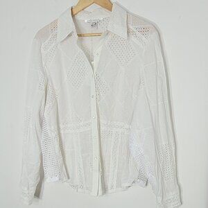 Studio Made NEW White Lace 100% Cotton Button Down Casual Shirt Size XLarge NWT