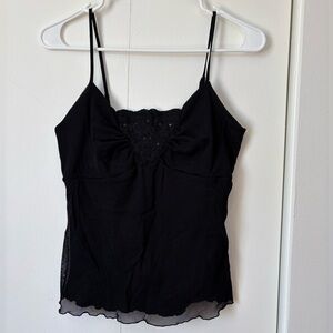 🖤 Y2K lace cami with subtle beaded detailing and mesh hem. Delicate and feminine. Great vintage condition (9/10).