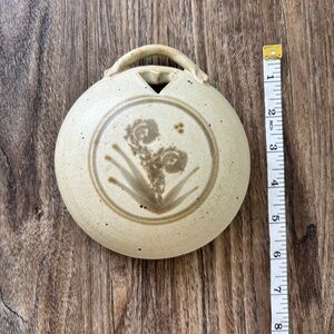 Studio Pottery Stem Flower Circular Wall Hanging Artist Signed