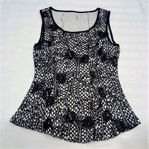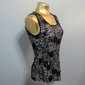 Very feminine and pretty top. Cream coloured underneath with black lace overlay. Flares out slightly around hip area.