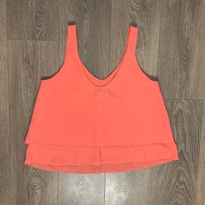 Studio by YDE Tiered Pleated Neon Orange Coral Pink Tank Top Crop