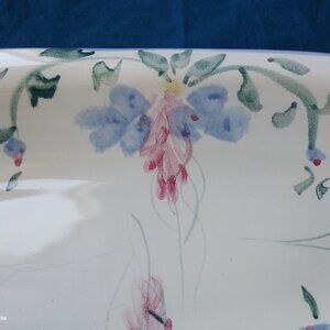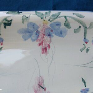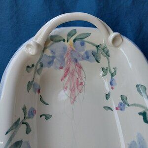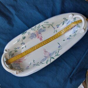 Studio pottery oblong serving dish with handles blue and pink flowers vtg 1993