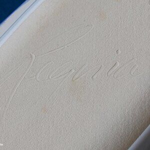 A handmade studio pottery piece signed by the artisan and dated Regina '93. It is 41 cm long and 18.5 cm wide at the widest point. A handle at each end makes foe easy passing around. Hand drawn flowers decorate the sides.
