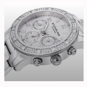 Elegant Stuhrling watch in silver with crystal accents. Perfect for any occasion.