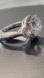 Stunning 3 round stones set in rhodium over 925 Sterling Silver. Each stone is surrounded by a halo of smaller round stones. Perfect as an evening or engagement ring.
