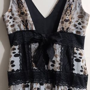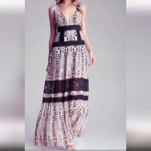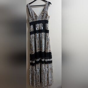 Stunning Bebe NWOT flowy maxi tired dress with lace details animal print…