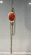 The elegant gold-tone chain supports a striking oval pendant featuring a rich, reddish-orange stone that beautifully resembles carnelian.