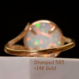 Stunning Custom Made 14K Rose Gold Opal Ring Vintage Real Gold Opal Ring Sz 6.75