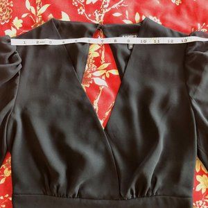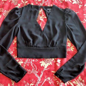 Stunning Express Puff-Shoulder V-Front Open-Back Long-Sleeve Crop Blouse XXS
