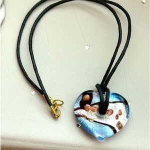 π Stunning Exquisite Rare Venetian Murano Glass Heart Pendant with Leather Chain