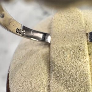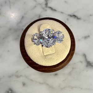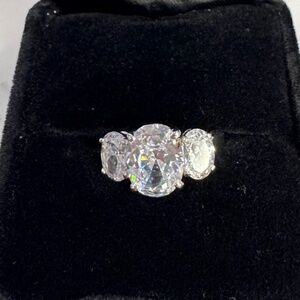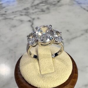 Stunning LARGE 3 stone cubic zirconia ring marked 925 silver MJI. Size 6 1/2