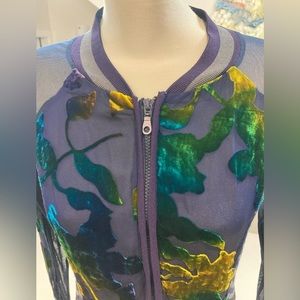 Stunning LULU H mesh/velvet appliqué bomber jacket sz large