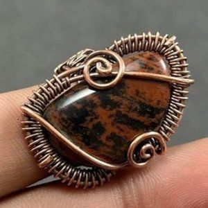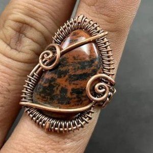 Stunning Mahogany Obsidian Ring Size 8 Copper Wire
