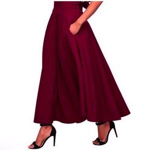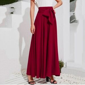 Stunning Maxi Skirt Burgundy Dark red Flowy Lightweight Pleated Belted Bow XXL