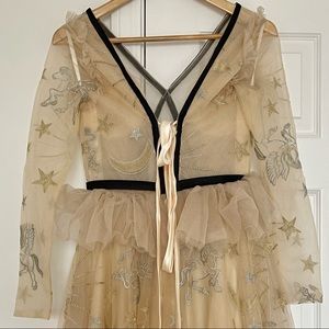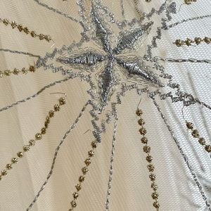 Embroidered with Silver and gold color thread on all over the dress.