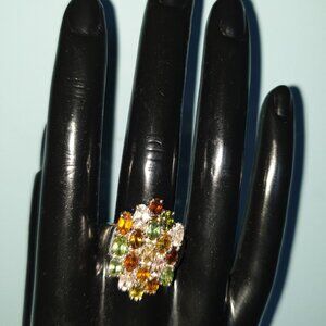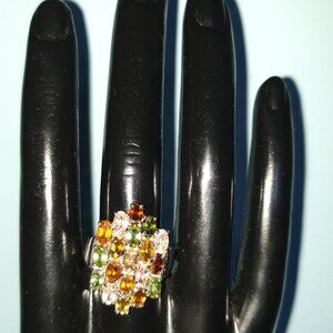 Stunning Multi-Colour Genuine Natural Tourmaline 925 Silver Cluster Ring