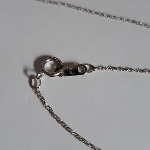 Beautiful Shiny 10k white gold necklace with small purple & clear stones on the heart. Chain is delicate. Both pendant and chain are 10k, please see pictures.