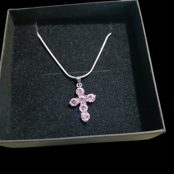 Stunning Pink Crystal Cross Necklace – A Meaningful & Elegant Piece. New item never worn!