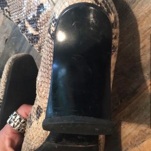 Stunning Python knee high boots, side zippers black wood heels with taps added on heels and forefront