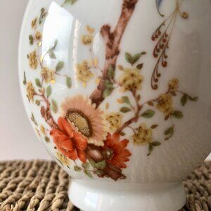 This stunning set of three small vases from Kaiser, featuring the "Olivia" pattern, is hand-painted with a vibrant Oriental pheasant and dogwood flowers, accented by exquisite gold detailing. The condition of this set is outstanding.