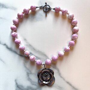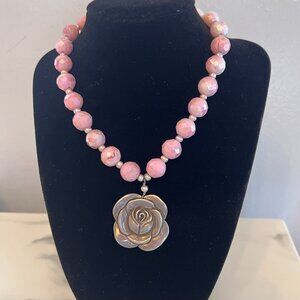 Stunning Silver Rose Pendant on Vintage 1960s Beads + Freshwater Pearls Necklace