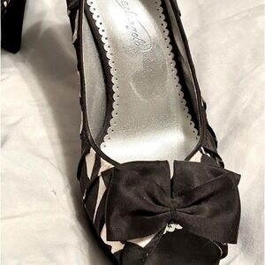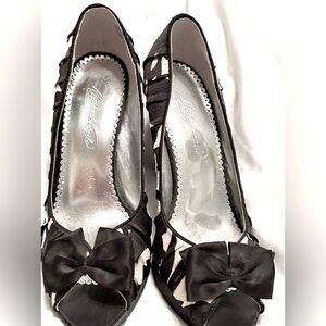 👠 Stunning Stylish Michelangelo Shadow Bow Heel Black, White Shoes - Never Worn