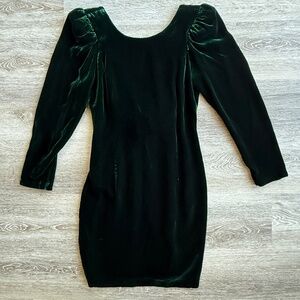 Stunning Vintage 80s Green Velvet Plunging Back Dress