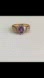 Gold plated with a prong set natural amethyst oval stone. Three round clear stones on the top and bottom and 7 baguette cut crystals with step detail on either side giving a fan look.
