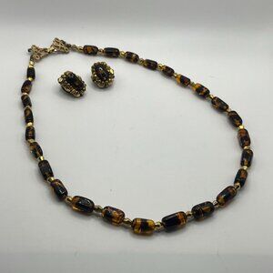 Stunning Vintage Baltic amber barrel bead necklace and earring set.