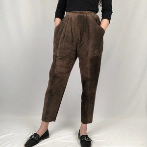 Stunning Vintage High Waisted Suede Leather Pleated Straight Leg Trouser Pants