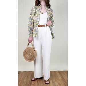Stunning Vintage Iris Floral Print Button Up Blouse Shirt Top Preppy Garden Girl