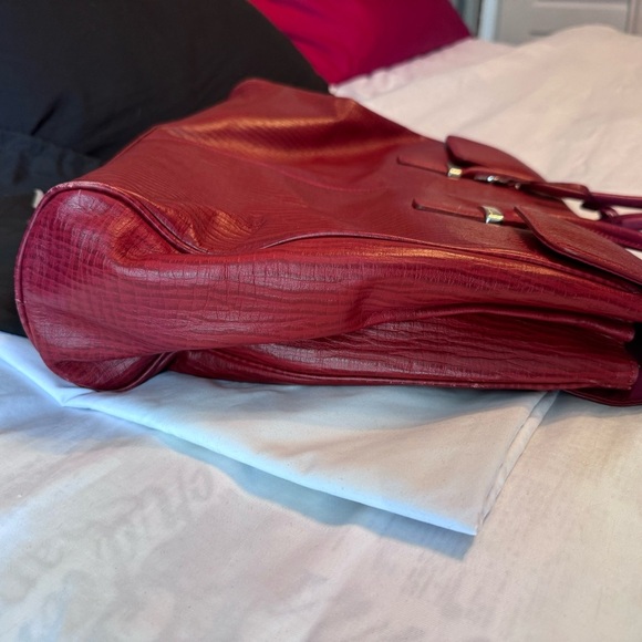 💼 Material: Red Embossed Leather with Metallic Hardware