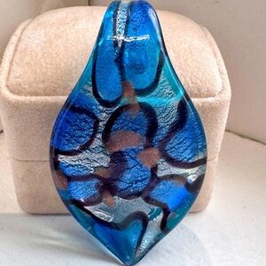 Bring a splash of Venetian magic to your jewelry collection! This gorgeous Murano glass pendant features swirls of ocean blue, shimmering silver foil, and bold black accents β each curve and color blend tells its own story. Handmade with that classic Italian artistry, no two are ever alike.