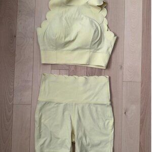 Keywords: Wiskii Active set, scalloped workout outfit, lemon sports bra shorts set, luxury activewear M, yellow athleisure