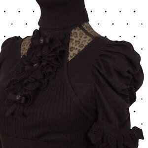 Stunning black sweater with neck cuff and ruffled details