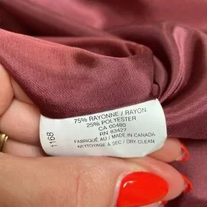 This is such a beautiful blazer! The hand on this fabric is so soft and quality. Bracelet length sleeve, size 8, fully lined