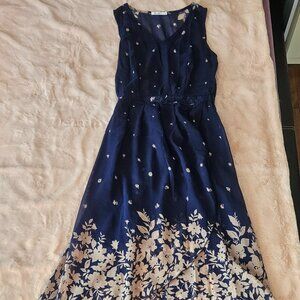 Stunning navy blue floral dress. This dress is perfect for special occasions, date nights, and casual elegance, featuring a flattering V-neckline, delicate floral patterns, and a flowy high-low hem.