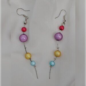 Stunning red, purple, yellow, and light blue Glass Pearl Drop Earrings Dangle