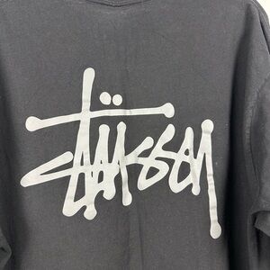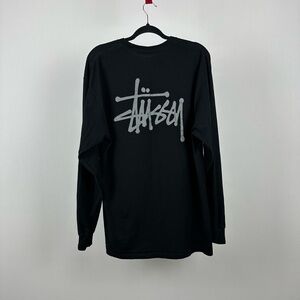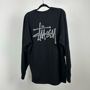 Stylish black tee with iconic Stussy logo. Comfortable long sleeves. Perfect for casual wear.
