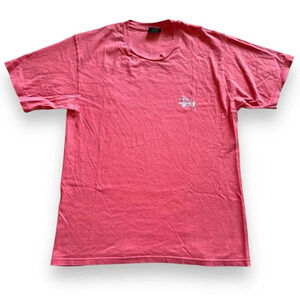 Vibrant coral tee with signature Stussy logo. Perfect for casual wear.