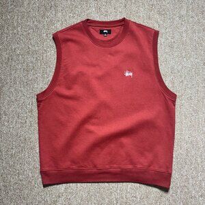 Stussy Fleece Vest Stock Logo Washed Burgundy EUC Mens XL