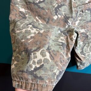 These Stussy cargo shorts in green and brown offer a modern twist on classic outdoor wear. Crafted from durable cotton, they are perfect for casual outings with their comfortable fit and stylish design.
