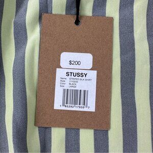 Stussy NWT 100% Silk Green/Black Striped Shirt Size Large Men's Button Down in brand new condition as shown in the photos with no flaws.