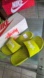 Vibrant lime green slides featuring Stussy collab with Nike