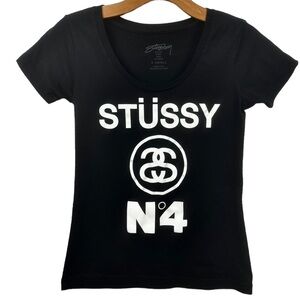 Stussy No.4 Black Slim Fit Cotton Blend T Shirt Size XS
