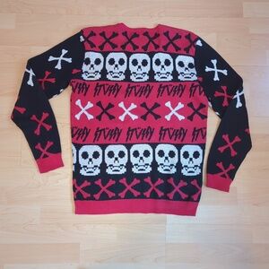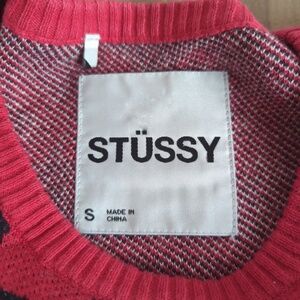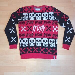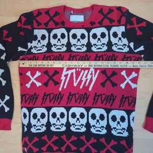 Stussy Red Black Skull Print Knit Unisex Sweater RARE