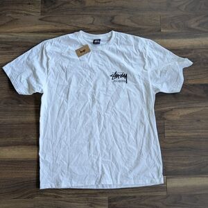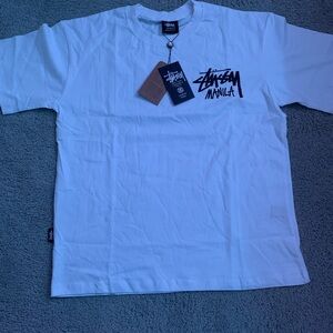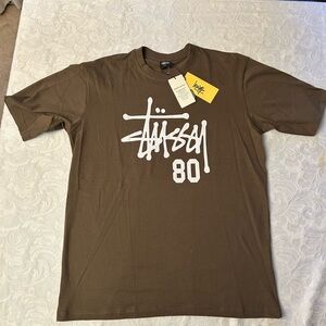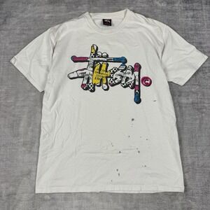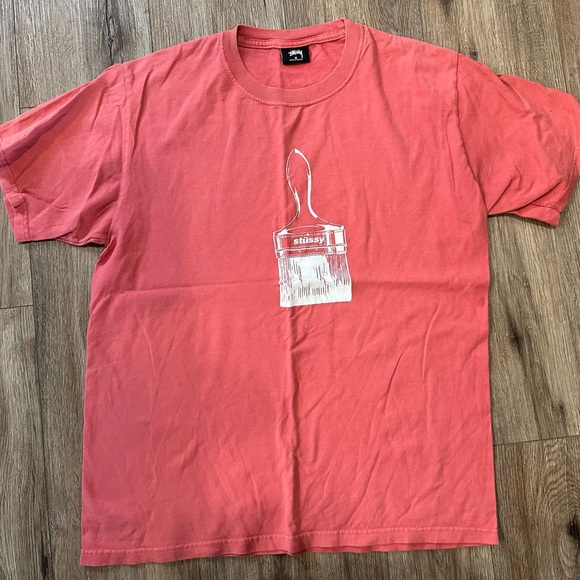 Bold Stussy tee with a paintbrush graphic. Soft fabric. Ideal for casual outings.Sz medium