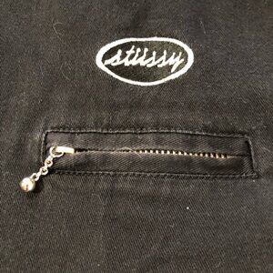 Stussy mens L black zip up lightweight cotton jacket workwear streetwear surfer