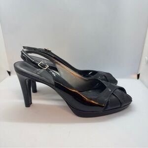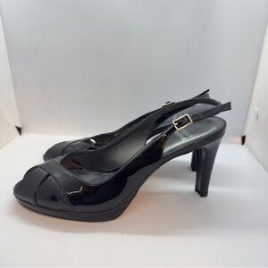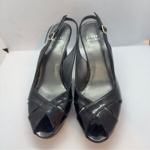 Stuwart Weitzman Slingback Peeptoe Black Patent Leather Heels Size 8M