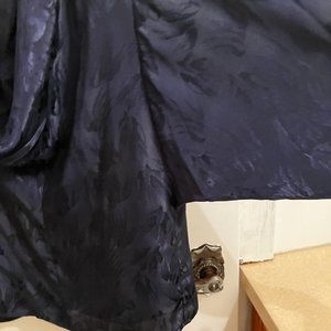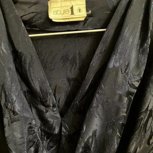 classic Style 1 blouse, size 6, dark blue, polyester, patterned, shoulder pads, like new, can't remember the name of neckline or sleeves and too lazy to look it up, you know